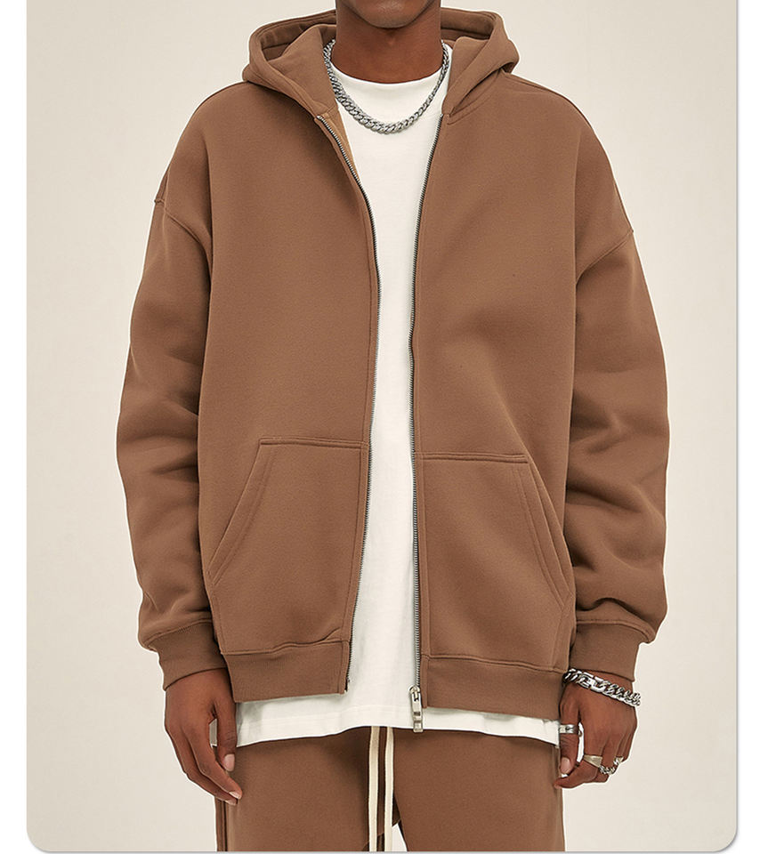 Sudadera con capucha con cremallera Logotipo de impresión personalizado 350gsm Peso pesado Sudadera con capucha con cremallera completa para hombres Sudadera con capucha con cremallera lisa de gran tamaño para hombres