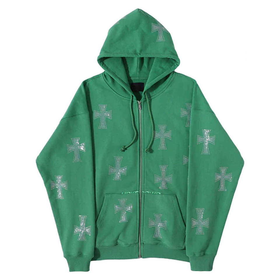 Sudaderas con capucha para hombre, personalizadas con bordado de diamantes de imitación, lavado ácido, estilo oversize, con gemas de diamantes de imitación, impresión DTG, efecto desgastado.