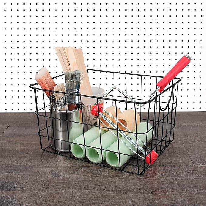 Cesta Multiusos de 15 Pulgadas con Gancho, Solución de Almacenamiento de Alambre de Acero Resistente, Asas Curvas Fáciles de Agarrar, Organización Decorativa