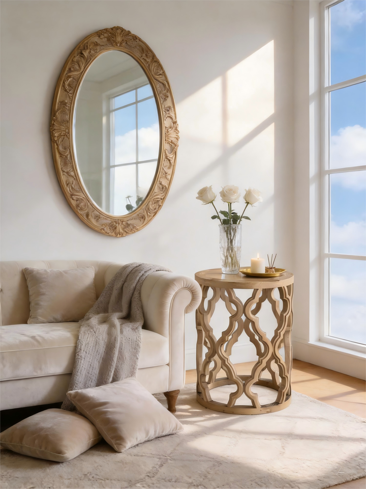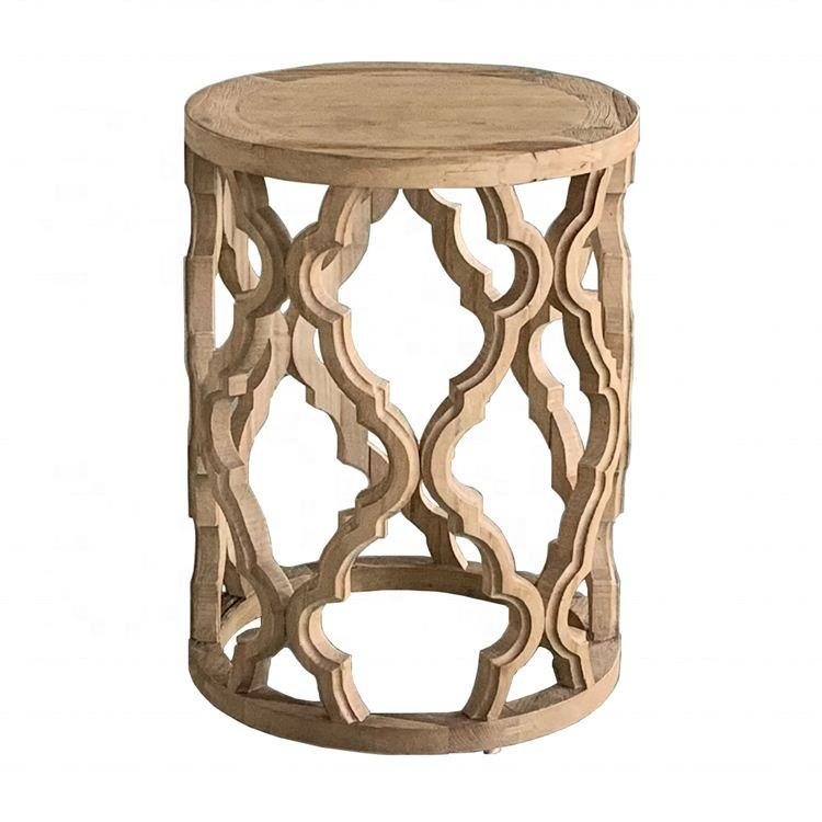 Mesa Auxiliar Hoolnn HL232 de Estilo Rústico Francés, Hecha a Mano con Madera Sólida de Olmo Reciclado, para Sala de Estar, Hotel u Hogar