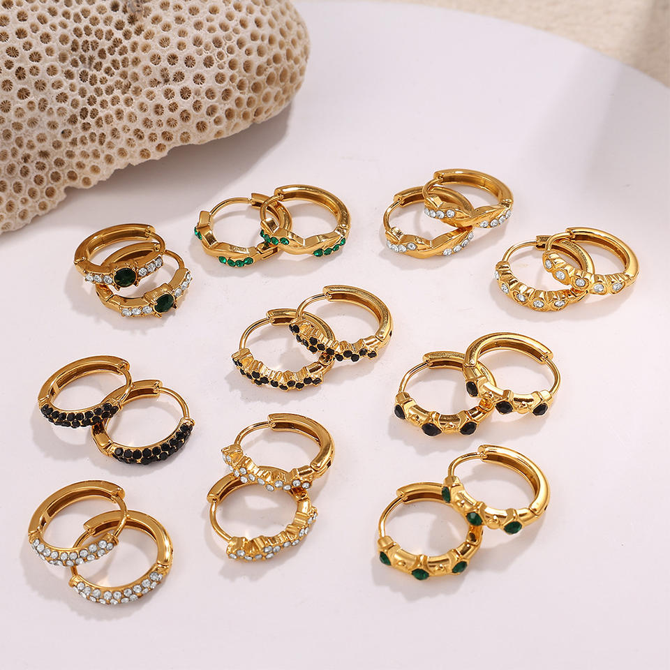 Pendientes de Aro Chapados en Oro de 18K con Diamantes de Imitación de Acero Inoxidable, Joyería de Moda para Fiestas