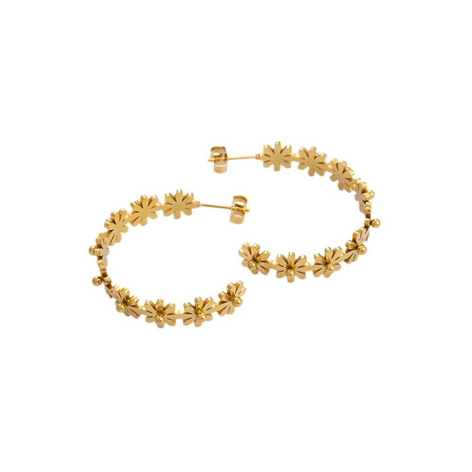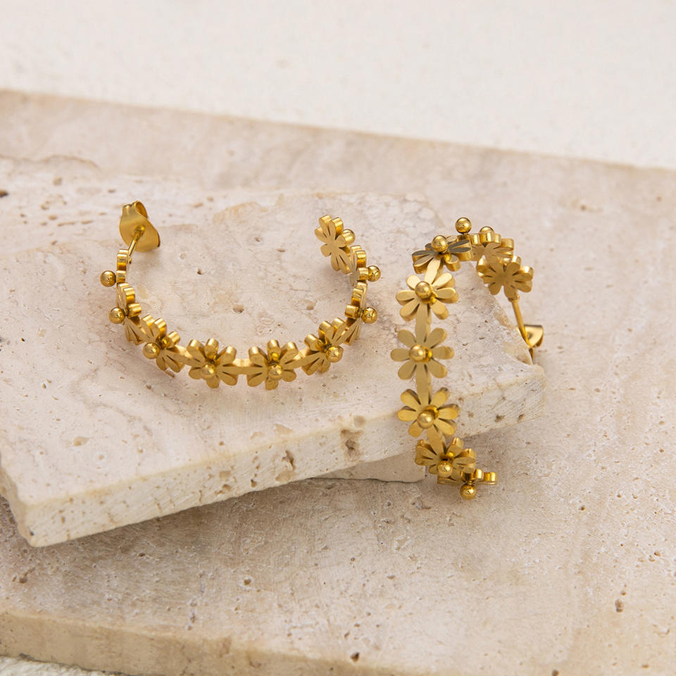Aros con Diseño de Flores, Chapados en Oro de 18K, Acero Inoxidable, Poste de Titanio para Joyería de Moda
