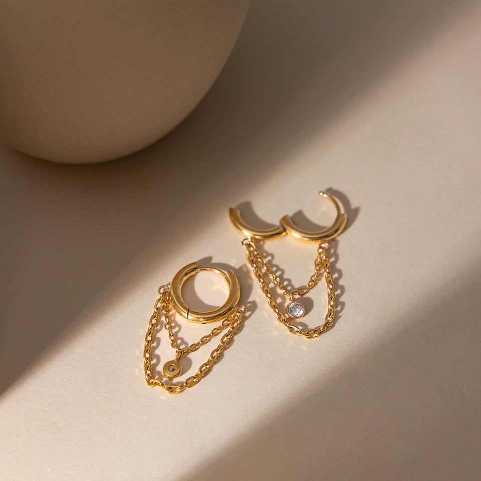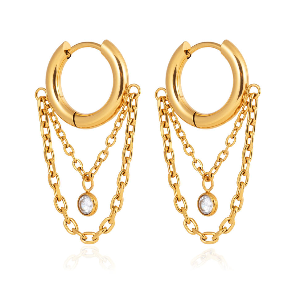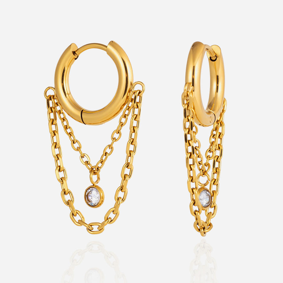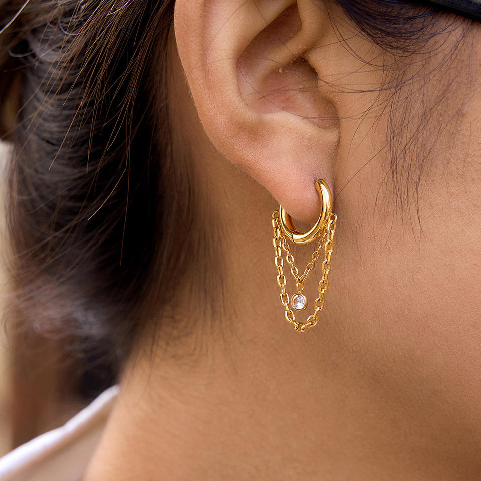 Pendientes de Aro con Cadena Dorada y Circonita, Pendientes Finos Colgantes para Uso Diario