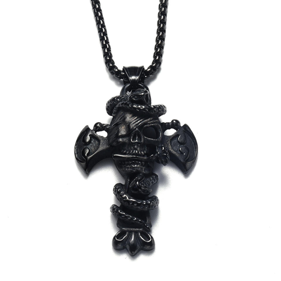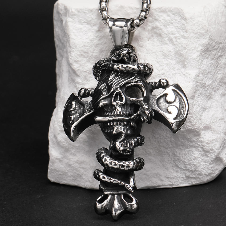 Hop retro do Old bite Rose serpiente envuelta Cruz collar de acero de titanio hombre punk Hipster colgante al por mayor