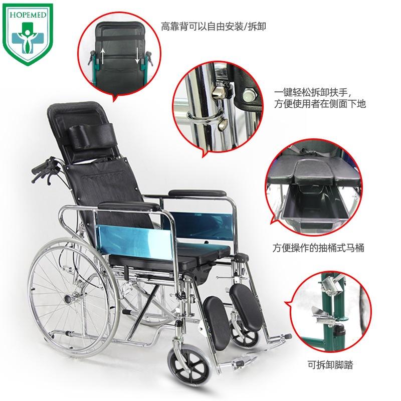 Silla de ruedas Hopemed con asiento de inodoro, reclinable y ajustable, manual, para ancianos y discapacitados
