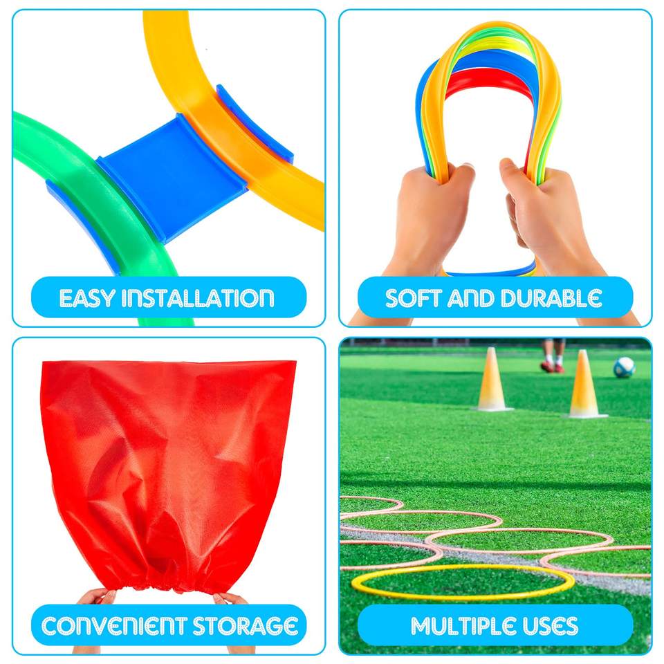 Juego de rayuela para niños 10 anillos 4 bolsas de frijoles 15 conectores actividad deportiva aros Clips Twister Rayuela juego activo multicolor