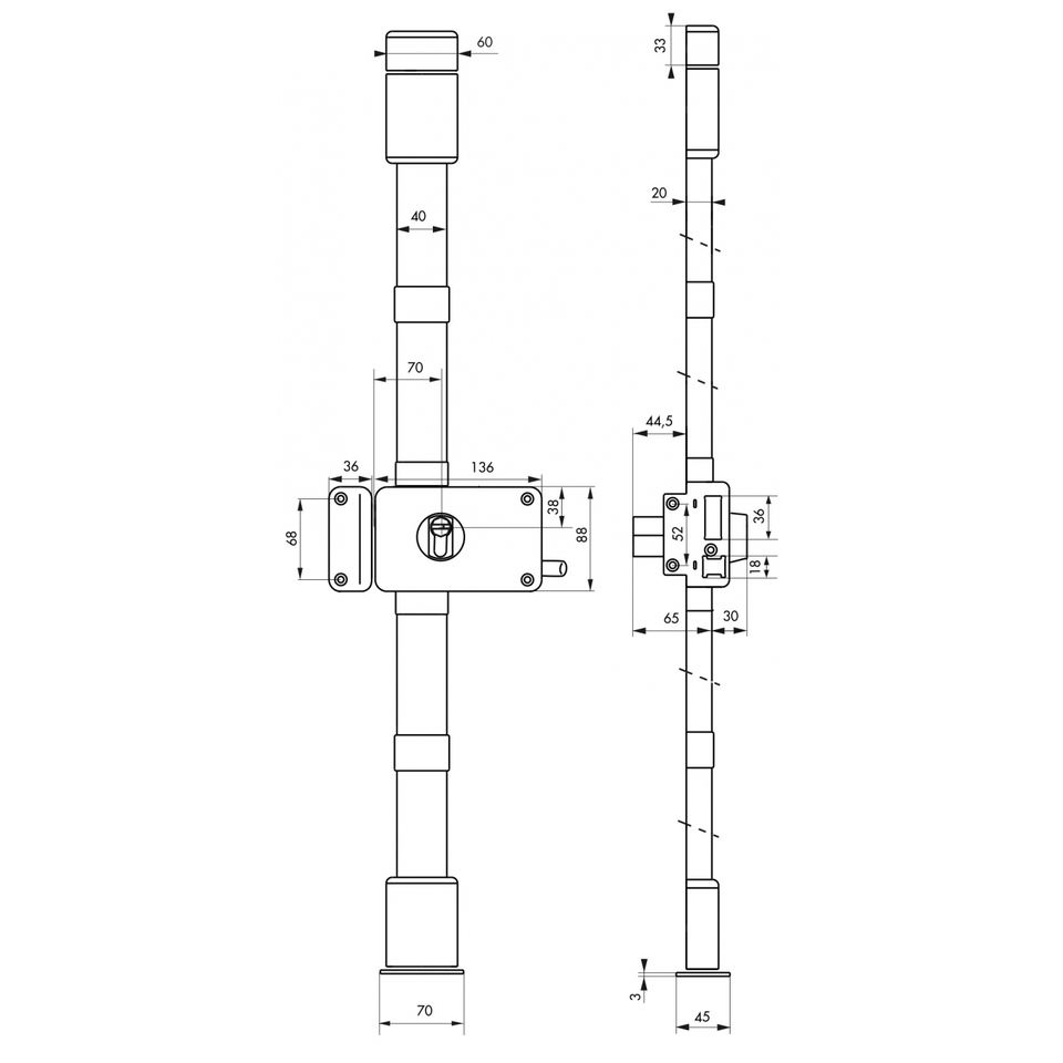 Cerradura Horga A2P* para aplicación izquierda, 3 puntos, Transit2 30x65 mm, marrón, 4 llaves - Descuentos reservados para empre