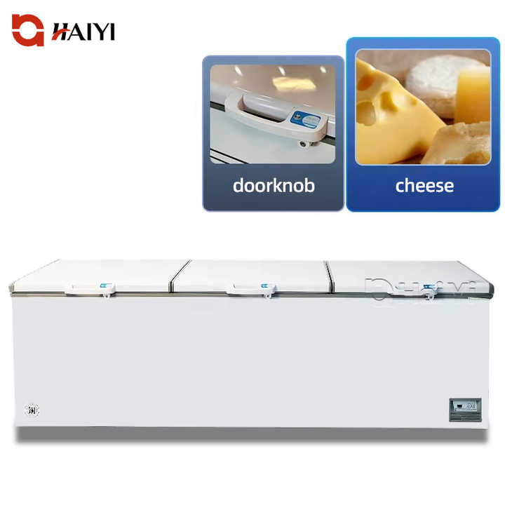 Congelador horizontal de tres puertas dobles para supermercado, Cocina, Restaurante, uso, refrigerador, función de visualización, congelador de pecho