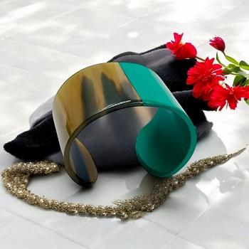 Brazalete de cuerno de búfalo de color natural con diseño de ágata Estilo animal elegante de F S International