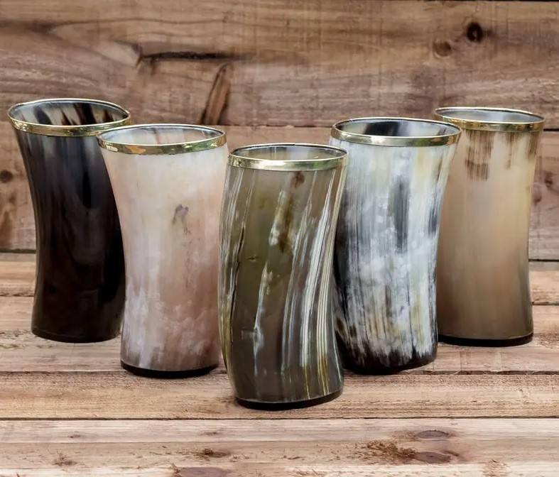 Vidrio de cuerno con uso hecho a mano, artículos de fiesta, cerveza, uso de vidrio de cuerno y el mejor vidrio pulido y tamaño personalizado