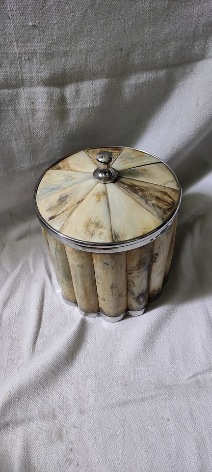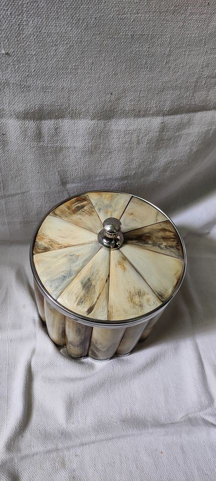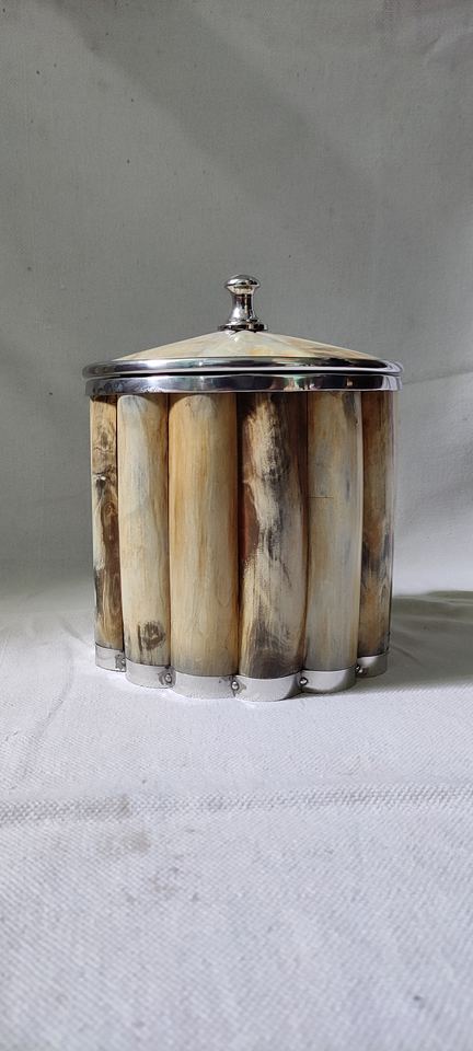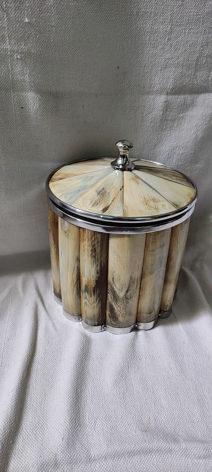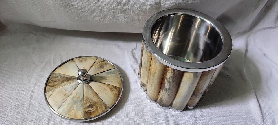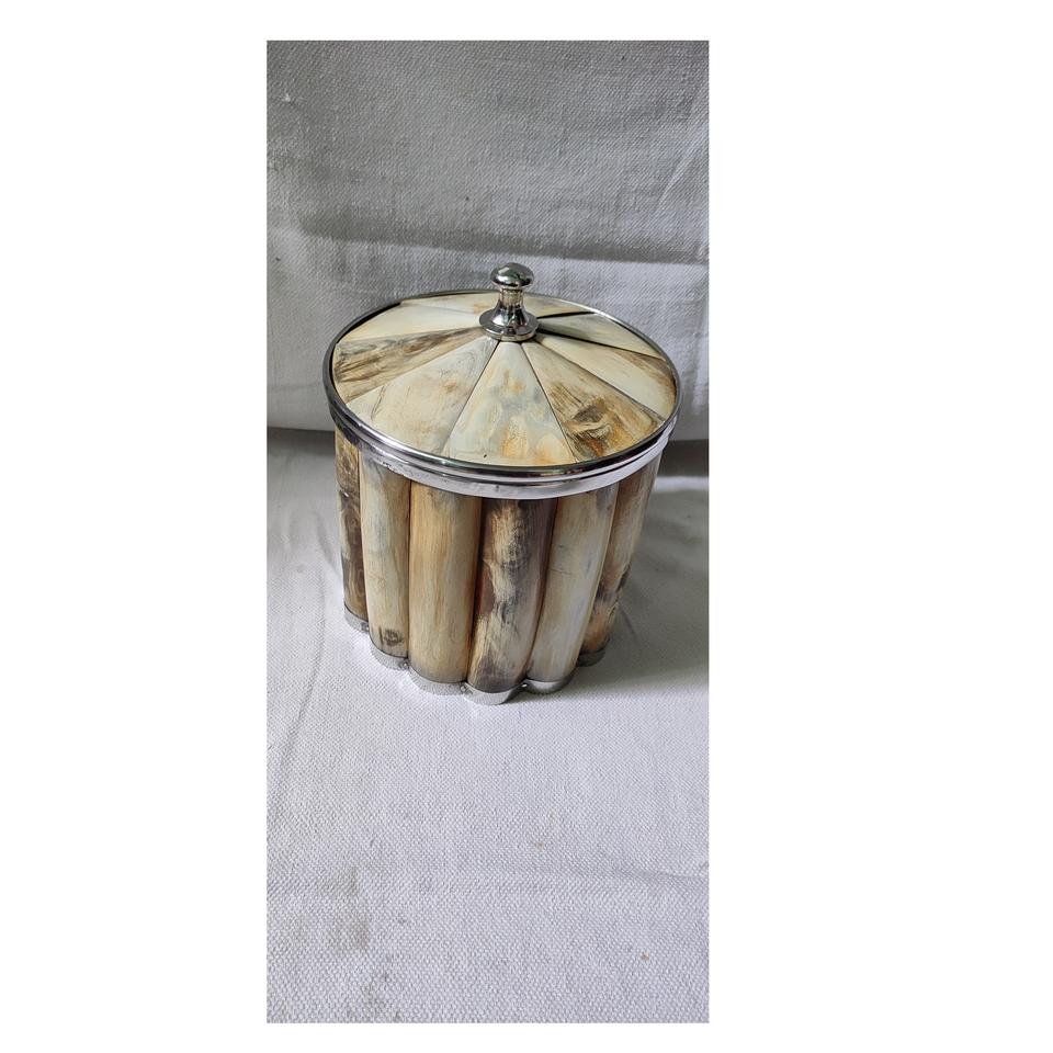 Cubo de hielo de cuerno e incrustaciones de cuerno desnudo en cubo de hielo de forma redonda de acero inoxidable con uso de artículos de fiesta para tapa