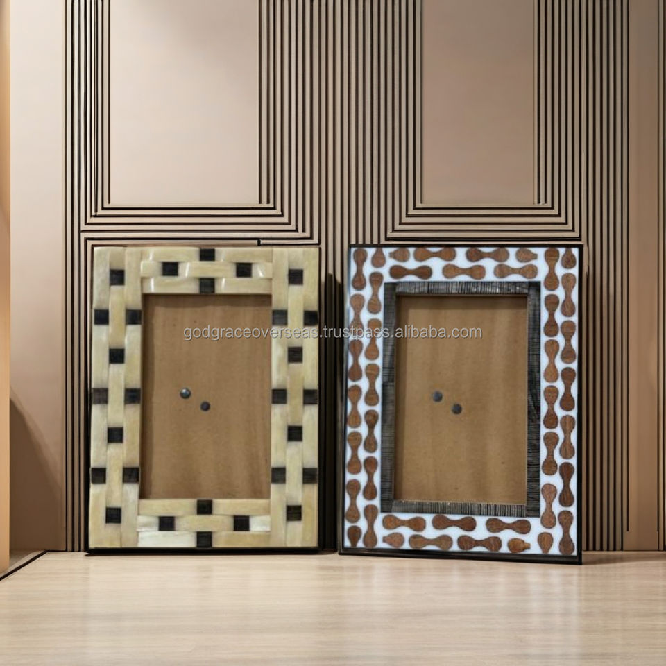 2024 Venta caliente marco de fotos de hueso de cuerno hecho a mano moderno de alta calidad UV impreso 4x6 DE LA India
