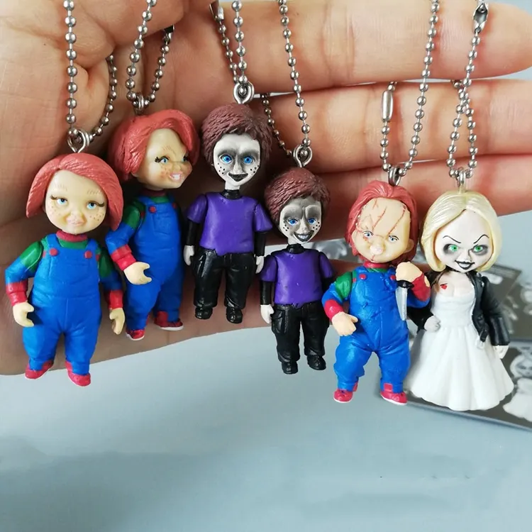 Horror Chucky Doll Juego de niños Llavero Anime Doll Good Guys 3D Scary Llavero Colgante Decoración de Halloween Chucky Llavero
