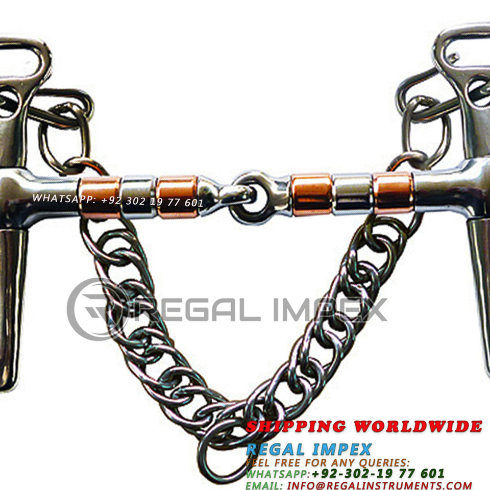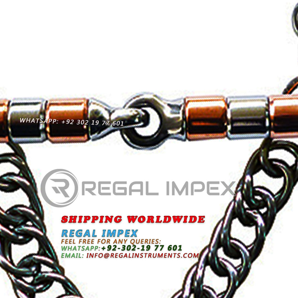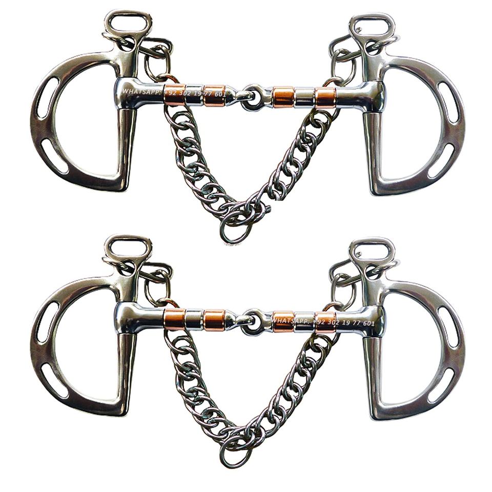 Bocado de Caballo de Cobre Sólido con Cadena de Gancho Binocular, Boca Articulada con Rodillos de Acero Inoxidable, Instrumento Veterinario, Suministros para Herradores