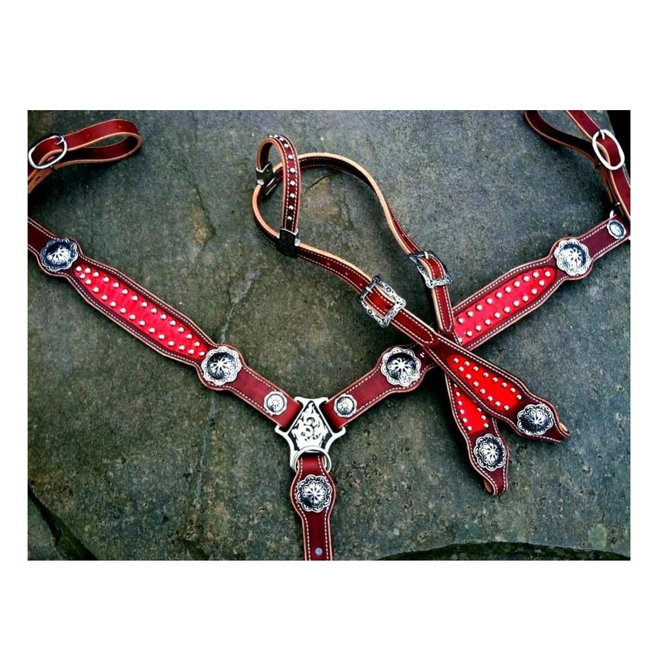 Caballo Pluma Western Headstall & Breast Collar Cuero ligero Cuentas personalizadas Diseño de temporada Equipos para montar a caballo