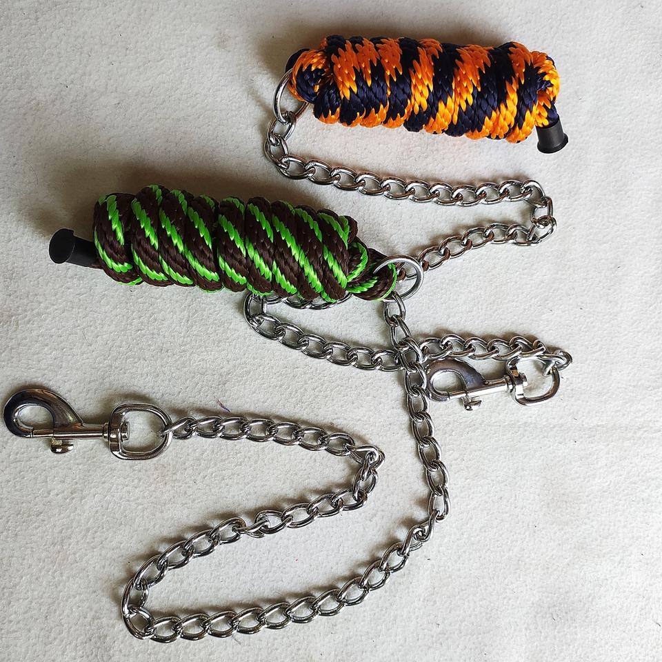 Cuerda de nailon con diseño de caballo, cuerda de plomo con cadena y clip, disponible en el fabricante de bajo precio de la India