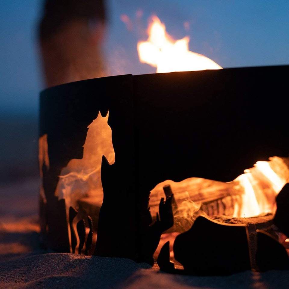 Patrón de caballo Corte por láser Nuevo diseño Tomando fácil montaje Anillo de fuego de metal negro para jardín Decorativo Uso al aire libre