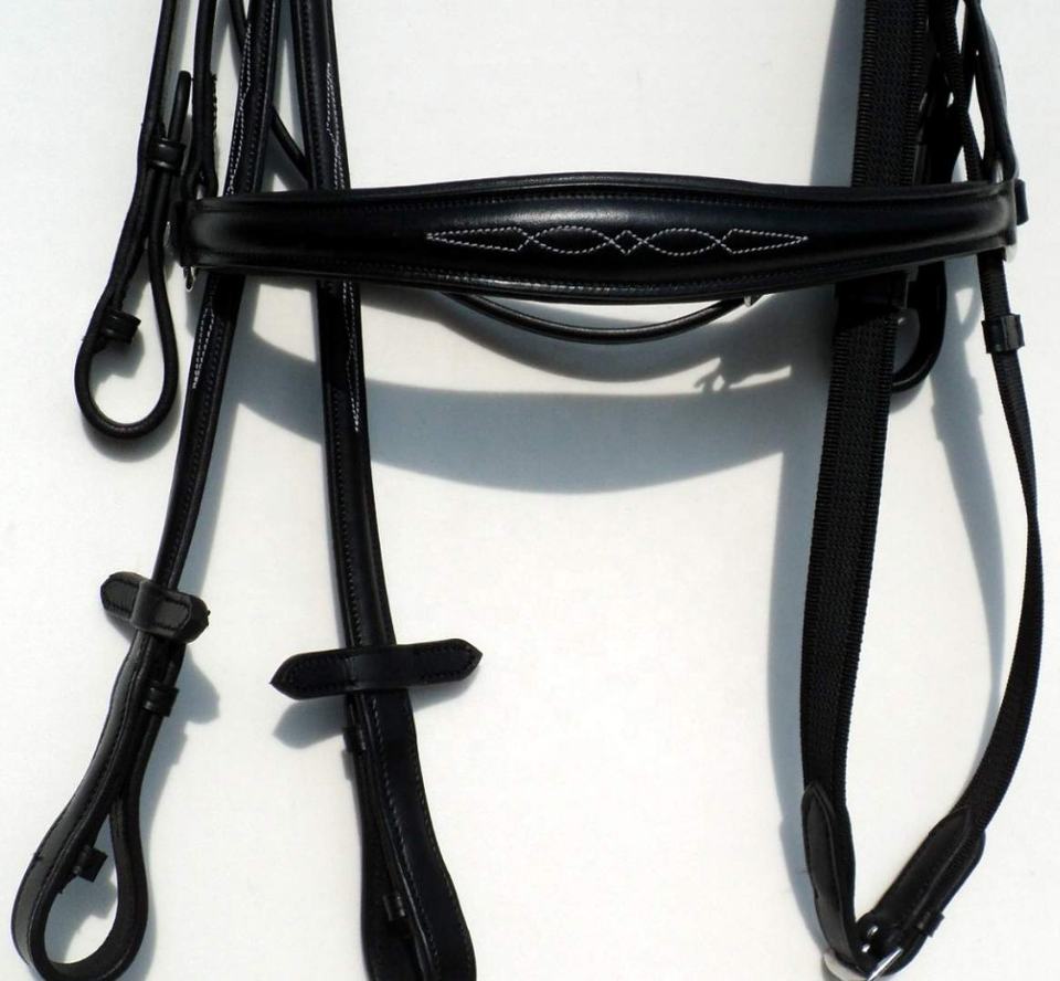 Brida de cuero para montar a caballo Cómoda y duradera Cuero suave Acolchado Diseño anatómico Artículos de talabartería Costura elegante
