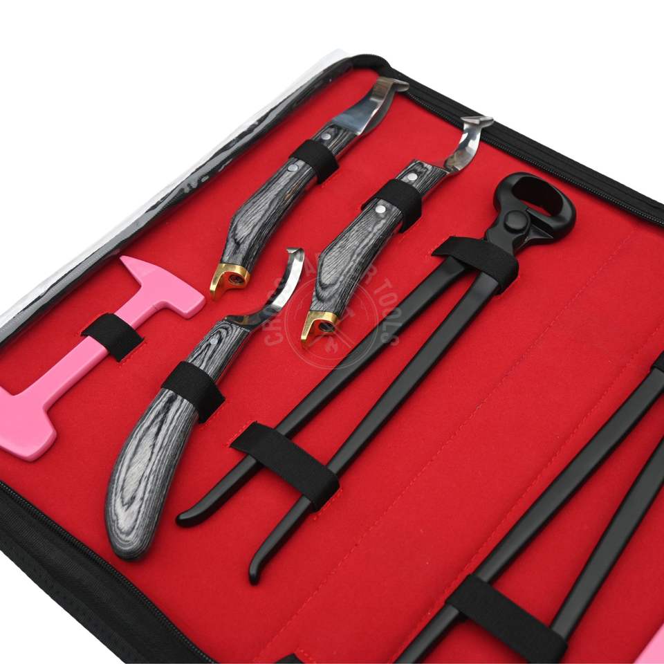 Cantidad mínima de pedido:1 estuche, juego de recorte de pezuñas, herramienta de herrado, Kit de herramientas de herrero con afilado