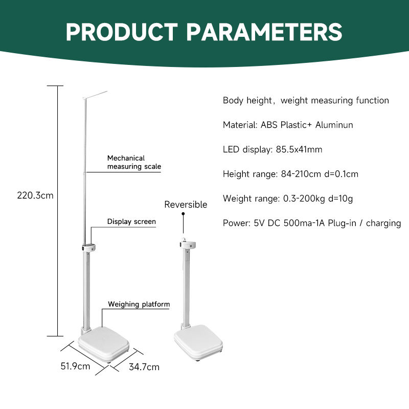 Regla manual de hospital Composición corporal Escala de peso de altura humana Escala de medición de altura digital con medición de peso