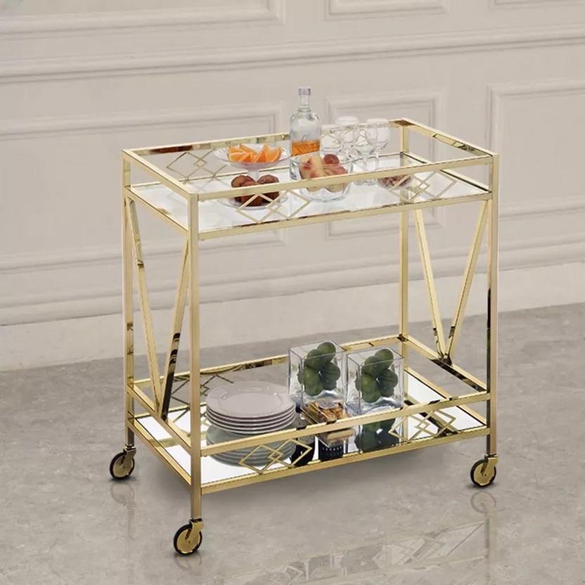 Hospitality Modern SS Carrito de servicio de 2 niveles para uso en la oficina del hotel en el hogar a precio mayorista de La India Carrito SS hecho a mano para Ho