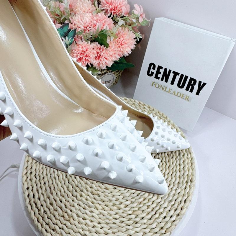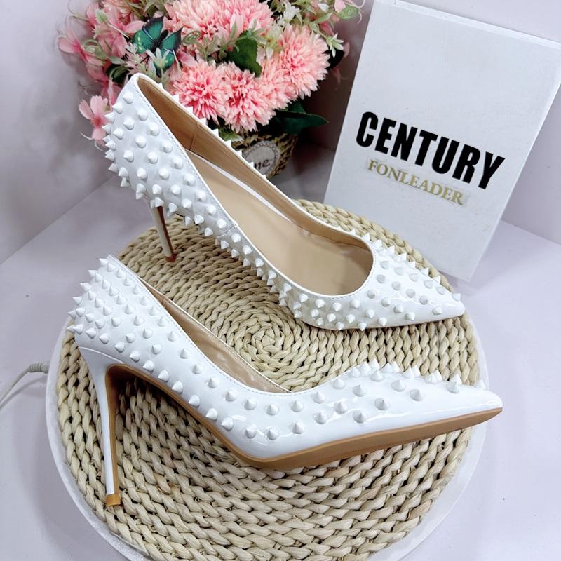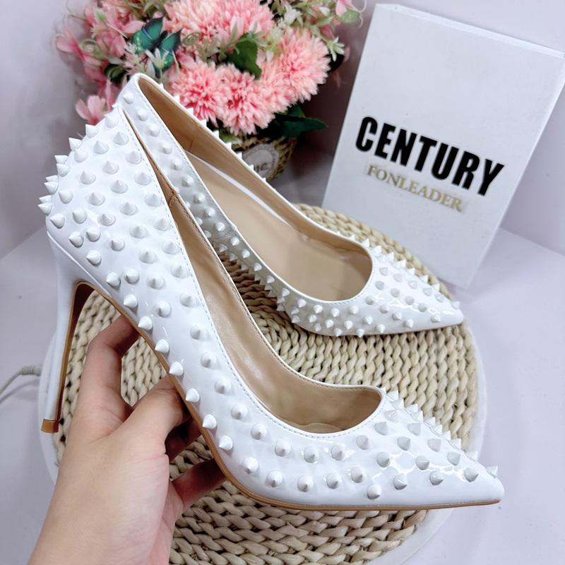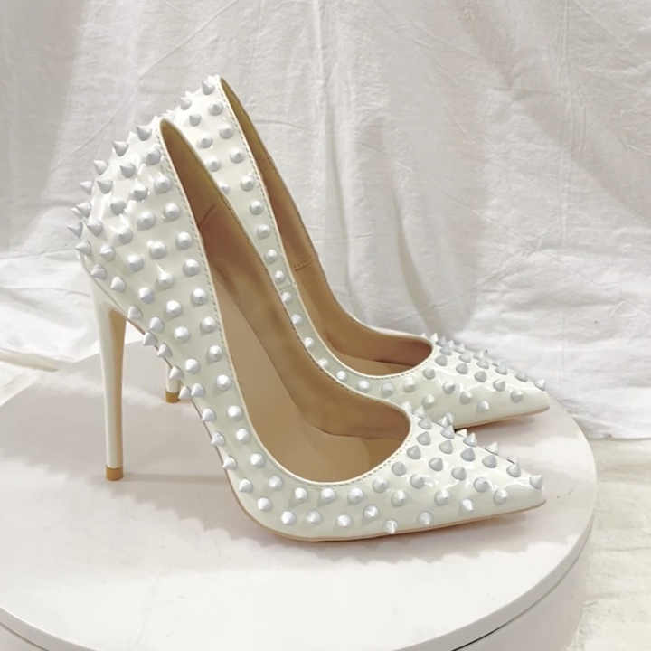 Zapatos de Tacón Alto de Moda con Remaches Blancos de 12 cm, Zapatos de Tacón de Aguja con Punta Puntiaguda para Mujer, Zapatos Sexys de Tacón Alto para Fiesta
