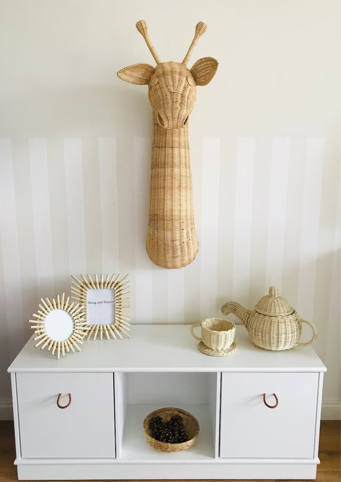 Decoración de Pared Infantil con Diseño Personalizado de Animales 2024 en Ratán Natural para Dormitorio Infantil
