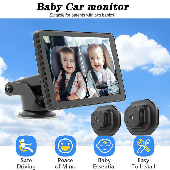 Caliente 5 pulgadas 2 cámaras de visión nocturna de alta definición plegable vista trasera de coche pantalla IPS Monitor de bebé con cable duro Monitor de asiento de coche de bebé