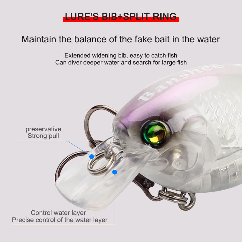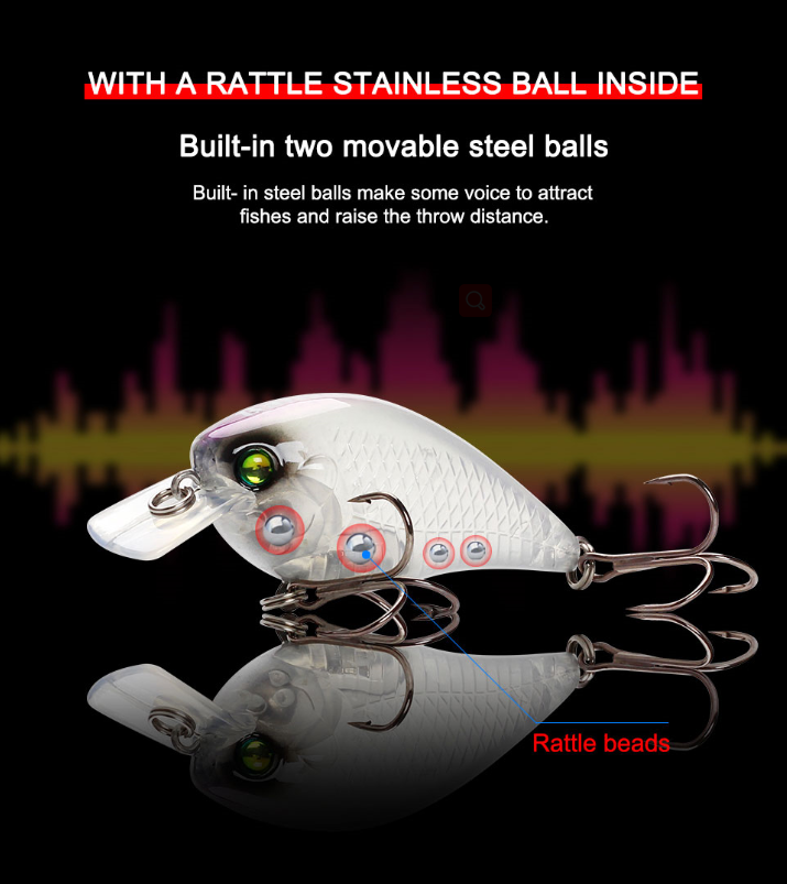 Material:Plástico ABS cuadrado Bill cranbait bajo wobblers señuelo