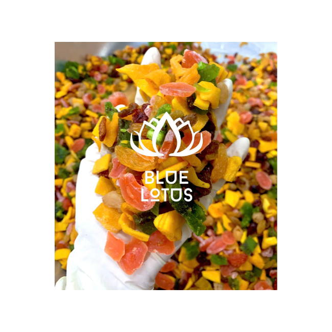 Elección caliente Mezclado en cubitos Fruta seca suave Aperitivo perfecto Granola para deliciosa mezcla sabrosa y masticable de frutas Premium Blue Lotus
