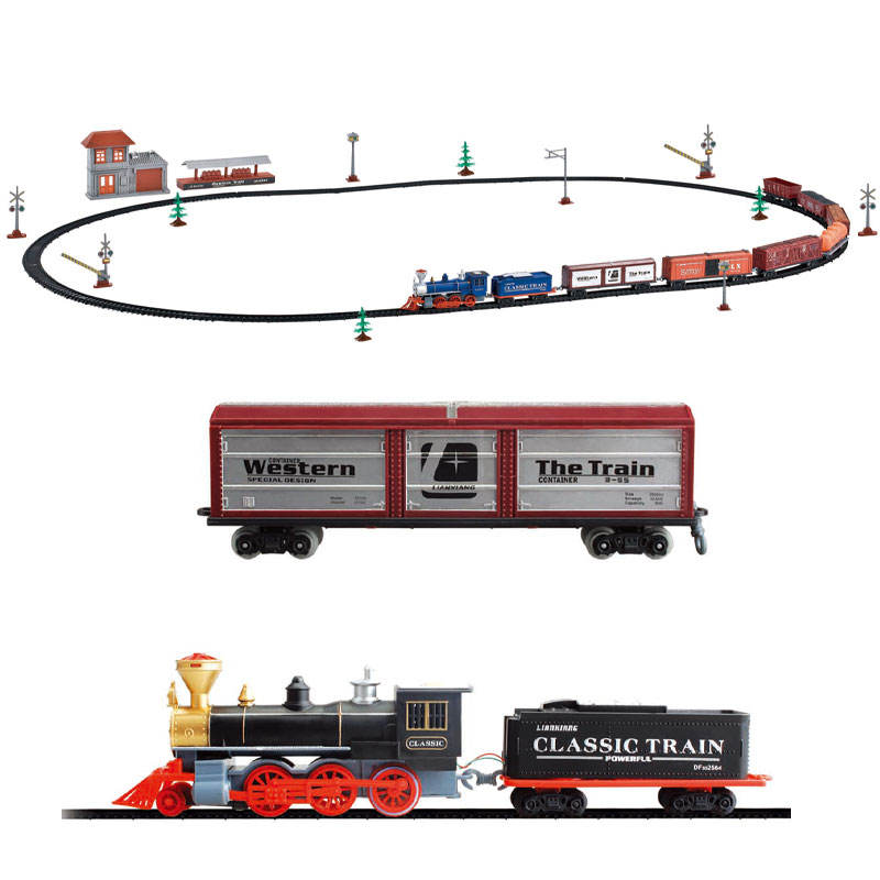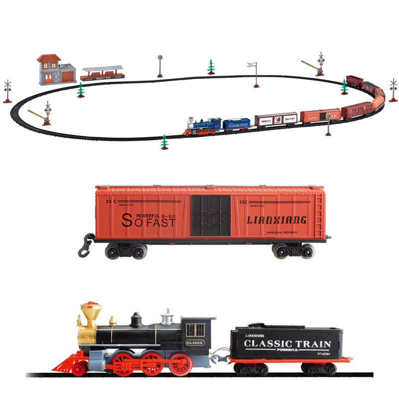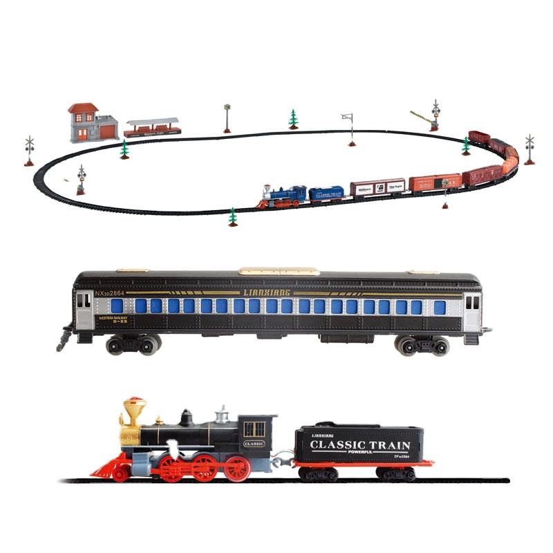 Tren de Juguete Clásico a Pilas, Pista de Tren para Niños, Juguete de Bricolaje, Pista de Tren Eléctrica de Simulación con Luces y Música