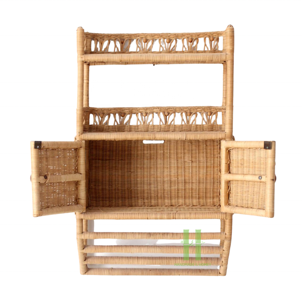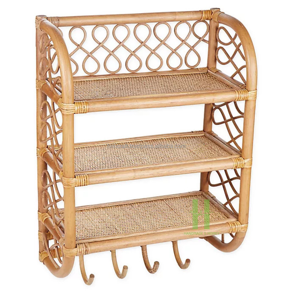 Hot Classics Estante de pared de cocina de ratán Estante de almacenamiento de mimbre Estantes para pared Diseños OEM Aceptable Personalizado Hecho a mano Vietnam