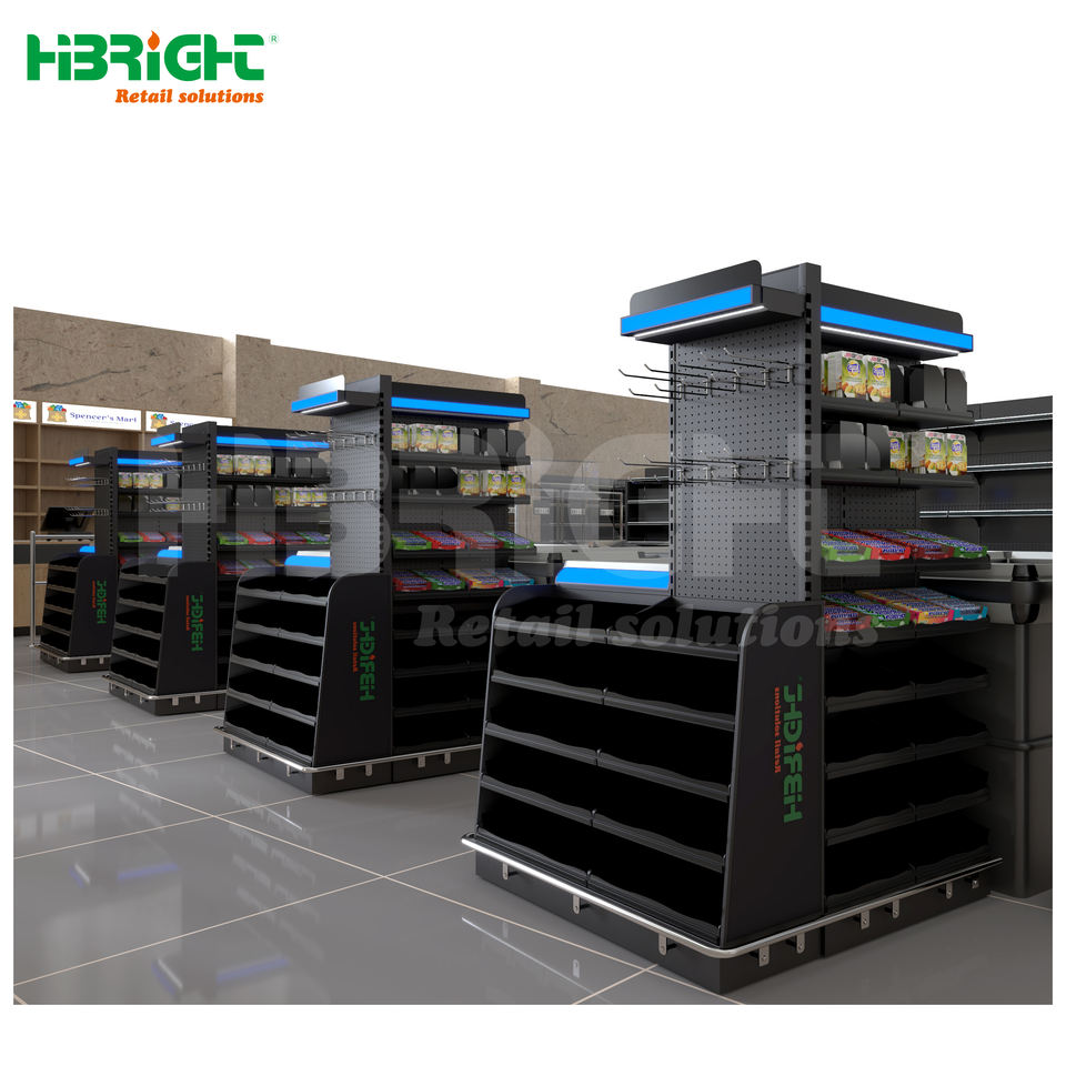 Solución Comercial Integral para Minoristas: Estanterías de Supermercado Negras de Hierro Resistente, Independientes, de 5 Niveles, Perforadas, Estilo Ligero