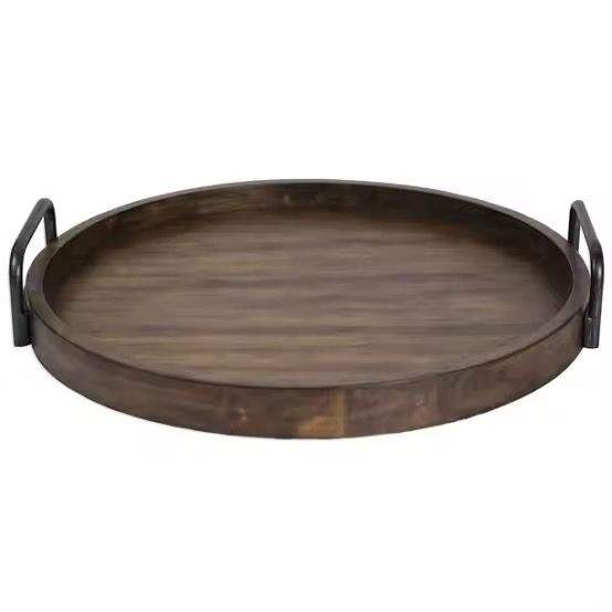 Bandeja para servir comida de Hotel de diseño caliente con mango de Metal, venta al por mayor, Bandejas para servir comida de restaurante de madera de Acacia