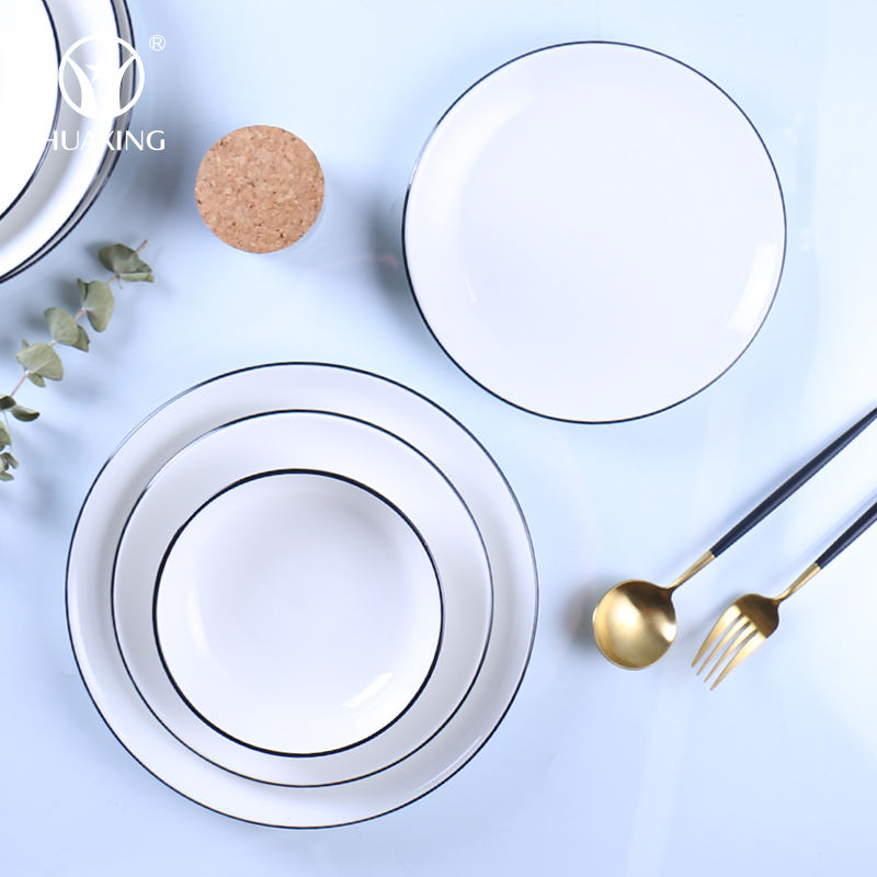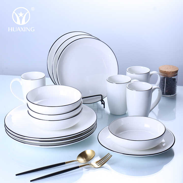 Vajilla de porcelana con líneas de colores, juego de vajilla para el hogar y el Hotel, 16 piezas