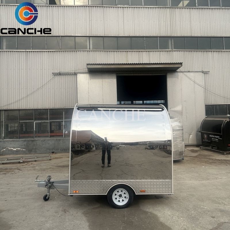 Carrito de Venta de Hot Dogs y Hamburguesas con Ruedas de 2.2 Metros, Remolque de Comida de Acero Inoxidable, Camiones de Comida Móviles Estándar Estadounidenses para la Venta de Aperitivos