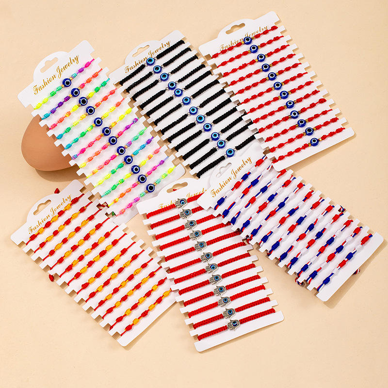 Pulsera Tejida de Poliéster con Diseño de Mariposa Bohemia y Siete Nudos, con Cuerdas Rojas de la Suerte y Ojo Azul, para Niños, Estilo Europa América
