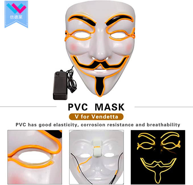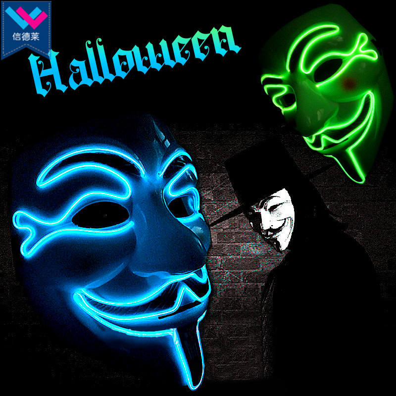 Máscara LED Brillante de Halloween, Máscara de PVC para Cosplay con Luz Intermitente de Terror, Máscara de V de Vendetta con Cable EL de Neón, ¡En Existencia!