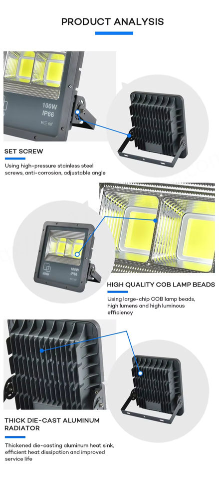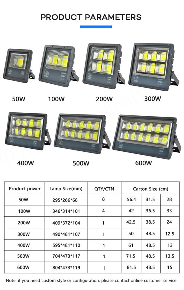 Carcasa caliente Estadio de alta potencia Smart COB IP65 50W-500W Accesorios Luz de inundación LED para exteriores 6000K Luz de día Aluminio
