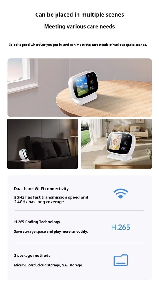 Tipo de cámara:Cámara de bebé WiFi con monitor con botón de contestar del teléfono
