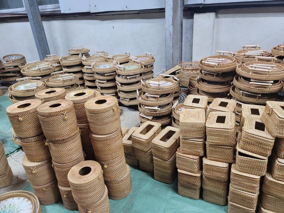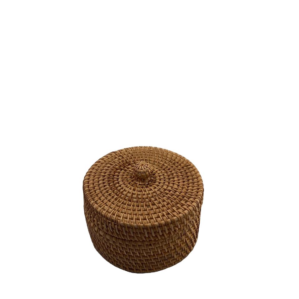 Artículo popular Bandeja de ratán natural Caja de almacenamiento de juguetes de diseño plegable conveniente para la Cocina casera con tapa de caja conveniente para el almuerzo