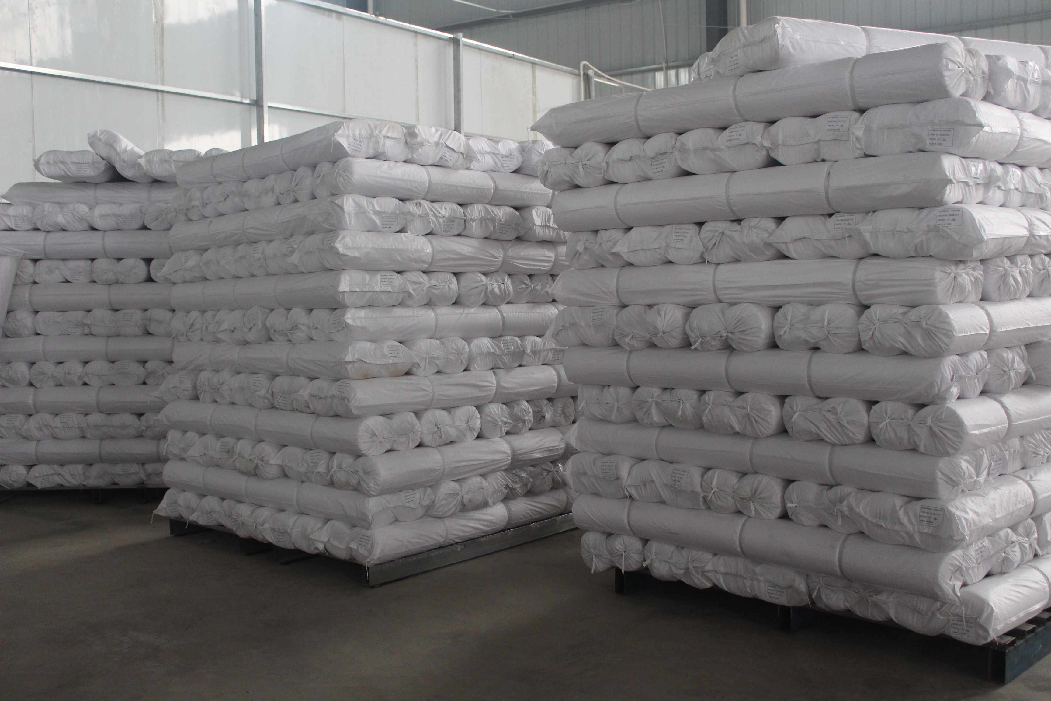 each roll is packed into a paper tipe and a blue PE bag outside,per 4 rolls packed into a white knitted bag, stick the marks on the knitted bag.