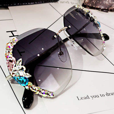 Hot Metal Ladies Rimless Glitter Big Frame Oversized Square Bling Diamond Gafas de Sol de moda 2024 Mujeres