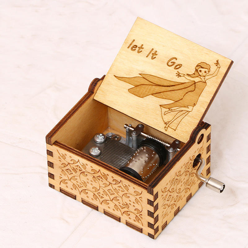 Mini Caja Musical de Madera con Manivela, Tallada, Pequeña, para Regalo