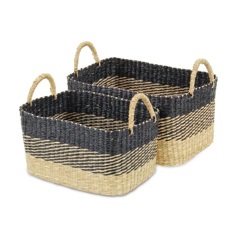 Cesta de Almacenamiento Rectangular de Jacinto de Agua con Asas, Modelo Popular, Cesta de Lavandería Tejida a Mano del Fabricante Nhat Minh, Vietnam