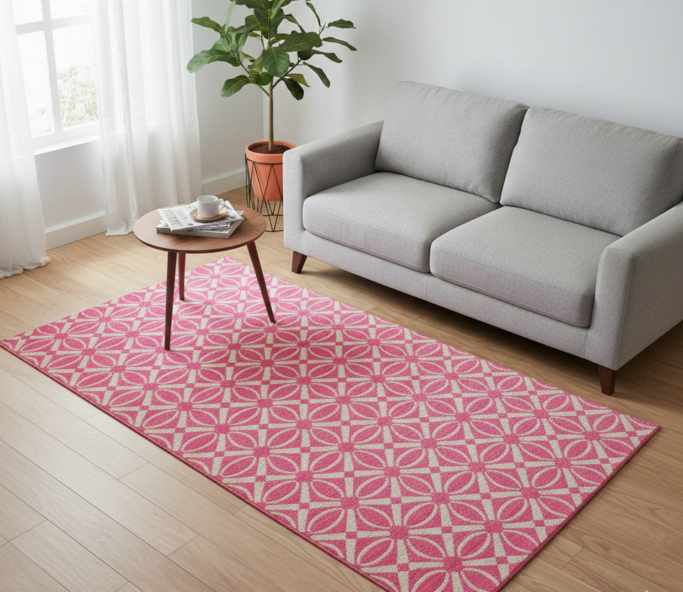 Alfombra Kilim geométrica moderna caliente alfombra de algodón de tejido plano marfil rosa brillante al por mayor alfombra Jacquard Floral contemporánea
