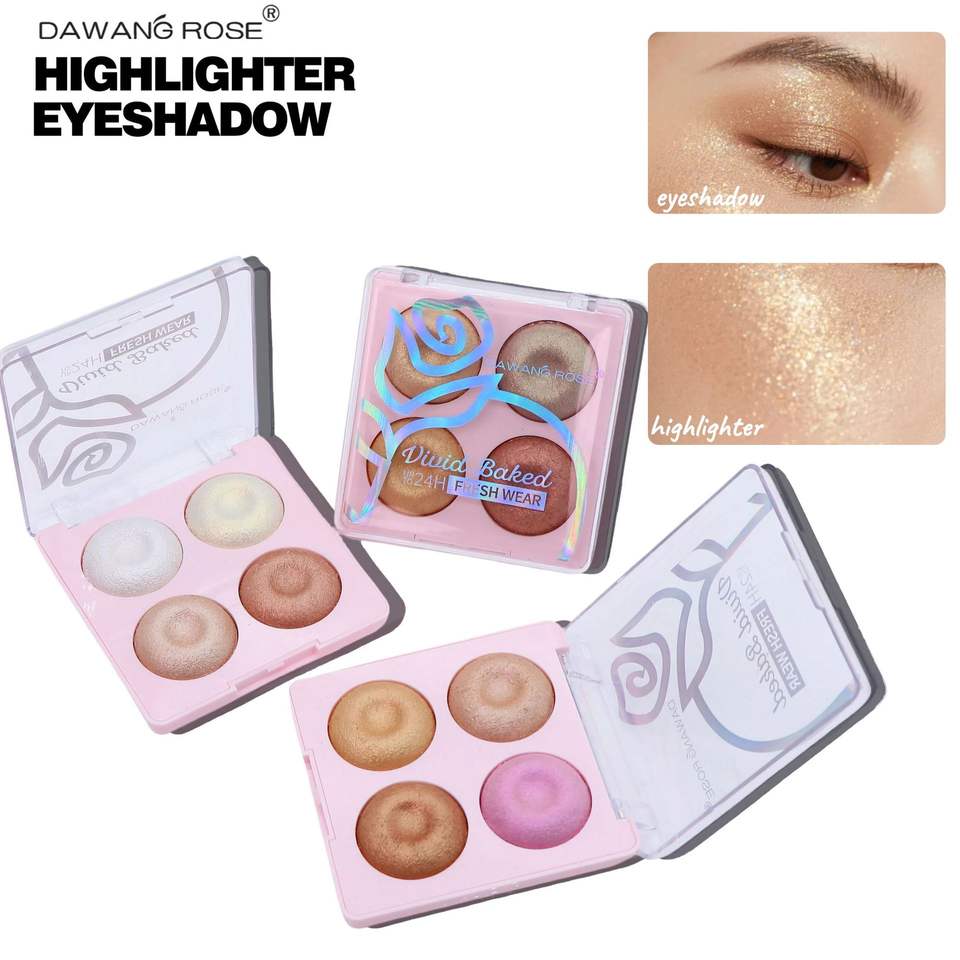 Hot New All-in-One 4-Color Pearlescent Powder Palette Highlighter Sombra de ojos y maquillaje de rubor de contorno con acabado brillante