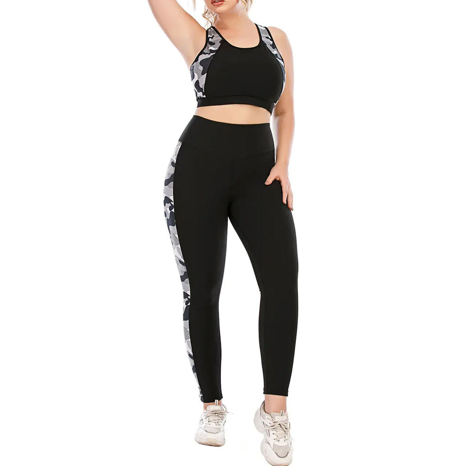 Nuevas mallas de Yoga de cintura alta, traje de gimnasio, costura de malla, conjuntos de Yoga de talla grande personalizados, patrón sólido para mujer, característica transpirable