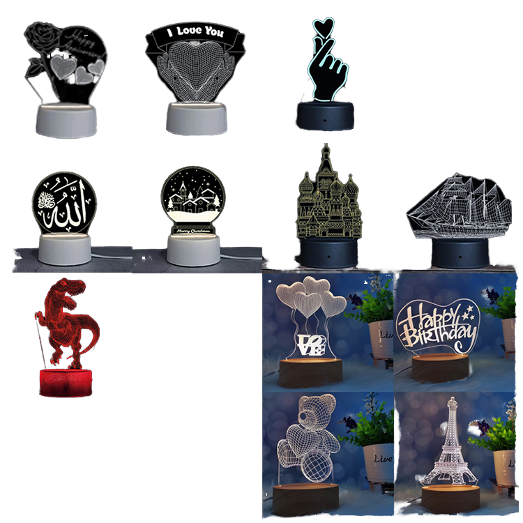 Hot New Modern 3D Acrylic LED Night Light Miles de patrones Colorido Material ABS táctil con control táctil para luces LED de dormitorio