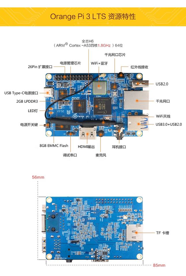 Hot Orange Pi 3 LTS Placa DE DESARROLLO Allwinner H6 chip 2G R/AM 8GB EMMC Soporte Android Linux Programación Maker Orange Pi3 LTS